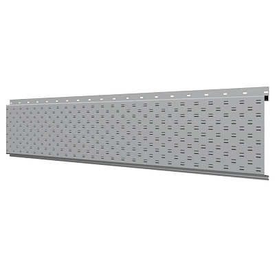 Линеарная потолочно-стеновая панель с ПЕРФОРАЦИЕЙ для вентиляции цвет RAL7004 Серый применяется в качестве софитов для подшивы крыши, наружной и внутренней отделки потолков, стен, фронтонов фасада дома в Ульяновске.