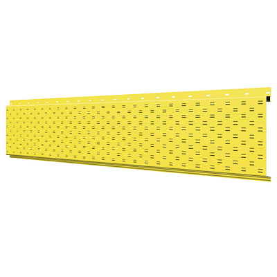 Линеарная потолочно-стеновая панель с ПЕРФОРАЦИЕЙ для вентиляции цвет RAL1018 Желтый применяется в качестве софитов для подшивы крыши, наружной и внутренней отделки потолков, стен, фронтонов фасада дома в Ульяновске.
