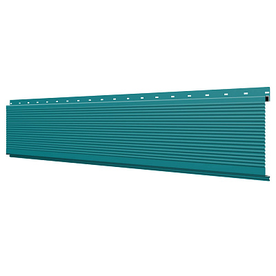 Линеарная потолочно-стеновая панель РИФЛЕНАЯ усиленная цвет RAL5021 Морская Волна применяется в качестве софитов для подшивы крыши, наружной и внутренней отделки потолков, стен, фронтонов фасада дома в Ульяновске.