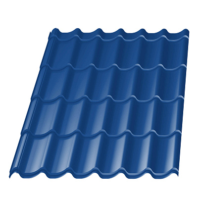 Металлическая черепица Меркурий цвет RAL 5002 Синий Сигнал имеет профиль внешне на кровле напоминающий классическую керамическую черепицу. Меркурий — это обновленный аналог профиля металлической черепицы для кровли крыши. Форма профиля имеет богатый внешний вид напоминающий небольшие набегающие волны. Лучшие показатели герметизации сделали профиль Меркурий гарантом стабильной и долговременной службы на крышах в Ульяновске. Данный профиль отличается не только своим качеством и практичностью, но и благородным внешним видом.