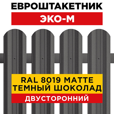 Штакетник ЭКО М-образный RAL8019/8019 МАТТЕ Темный Шоколад матовый двухсторонний