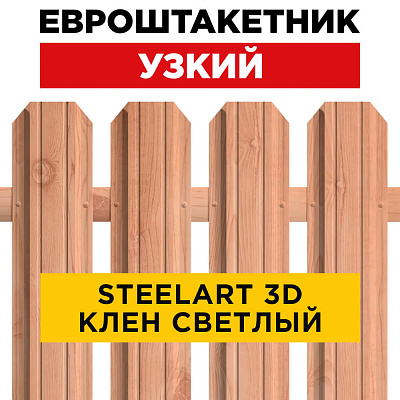 Штакетник Узкий Клен Светлый 3D SteelArt под дерево