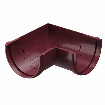 Угловой элемент желоба универсальный ДЕКЕ STANDARD d120мм 90 градусов цвет RAL 3005 Красный в Ульяновске. Угловые элементы устанавливаются как на внешних, так и на внутренних углах кровли и предназначены для соединения желобов.