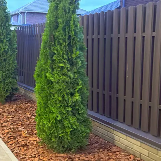 Красивый современный забор из штакетника Полукруглого RAL8019 МАТТЕ Тёмный шоколад матовый двусторонний, который гармонично подчеркнул современный дизайн участка. Забор с оригинальным заполнением «шахматкой» смотрится стильно и воздушно, сохраняя баланс между приватностью и лёгкостью конструкции. Комплекс дополнен воротами с автоматикой и аккуратной калиткой в едином стиле, что обеспечивает удобство эксплуатации и завершённый внешний вид. Такое решение удачно сочетает практичность, надежность и эстетичность, подчеркивая индивидуальность территории.